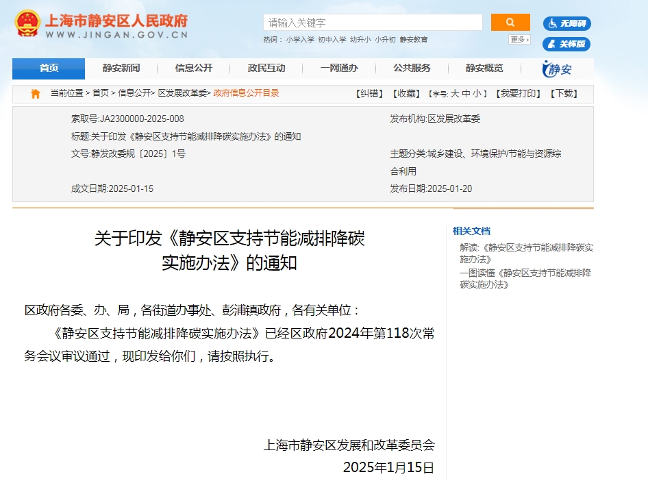 2025年1月15日,上海市靜安區(qū)發(fā)展和改革委員會(huì)印發(fā)《靜安區(qū)支持節(jié)能減排降碳實(shí)施辦法》,文件中扶持資金分為補(bǔ)貼、獎(jiǎng)勵(lì)兩種方式。補(bǔ)貼或獎(jiǎng)勵(lì)金額按照項(xiàng)目性質(zhì)、投資總額、節(jié)能量、減碳量、節(jié)能率以及產(chǎn)生的社會(huì)效益等綜合測(cè)算。