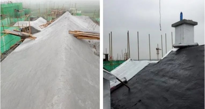 坡屋面壓光成活(左),刮涂BH2防水油膏