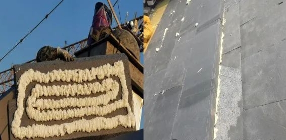 4.保溫板厚度均分兩層粘貼,必須采用發泡膠粘貼,拼縫填注發泡膠。