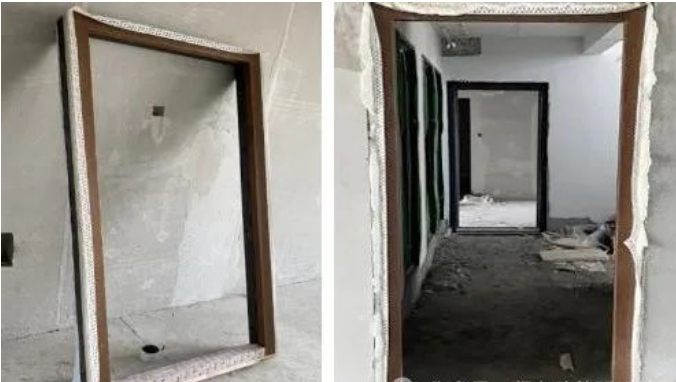 2.粘貼氣密膜,調整好門框后內側粘貼防水隔汽膜,外側粘貼防水透汽膜。通過隱蔽驗收后再進行粉刷收口。