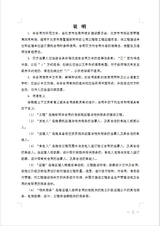 二、示范文本自2025年7月1日起正式推行使用。《北京市建設工程監理合同》(BF——2014——0206)示范文本不再推行。