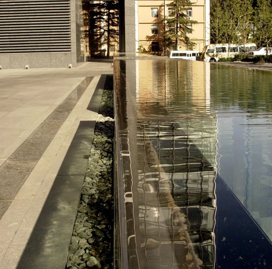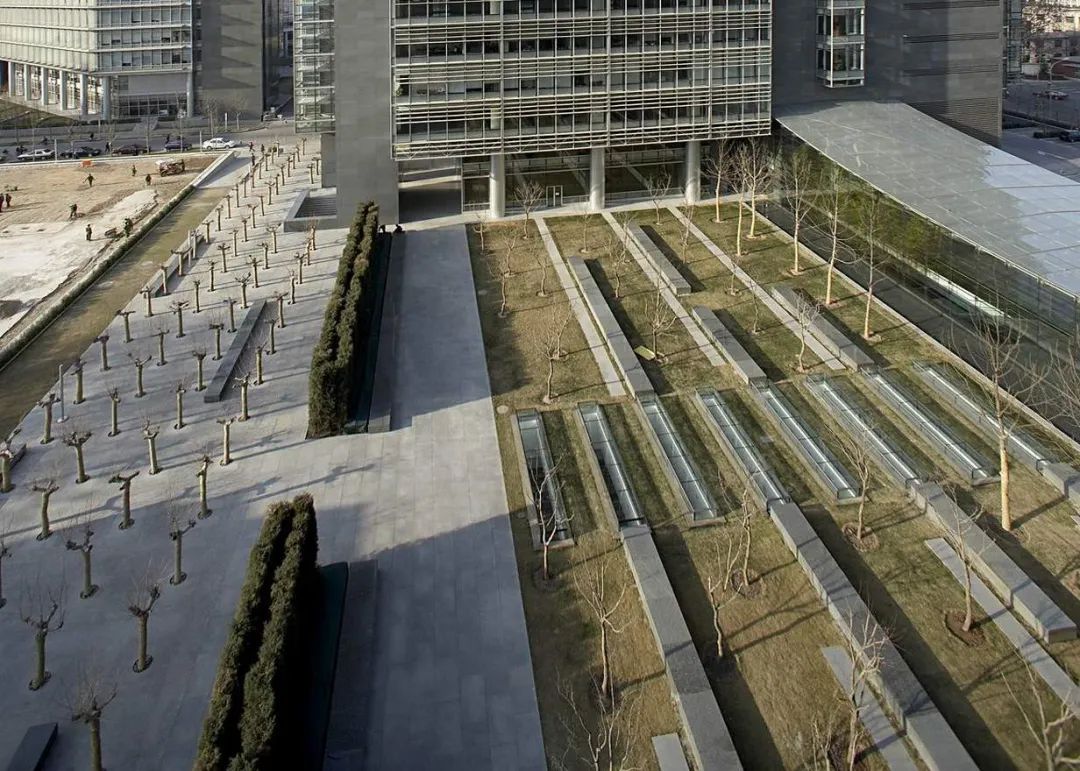 傳統建筑和園林是中國建筑文化的豐富寶藏,現代設計亦可以從中汲取精華。設計團隊將建筑置于花園之上,運用透明、鏤空、借景的手法,豐富空間層次,通過種植池、路面、水景和藝術小品將兩座樓宇相連,東側林蔭停車場、中庭及南側花園、西側步行區等將整個建筑烘托在綠色之上。
