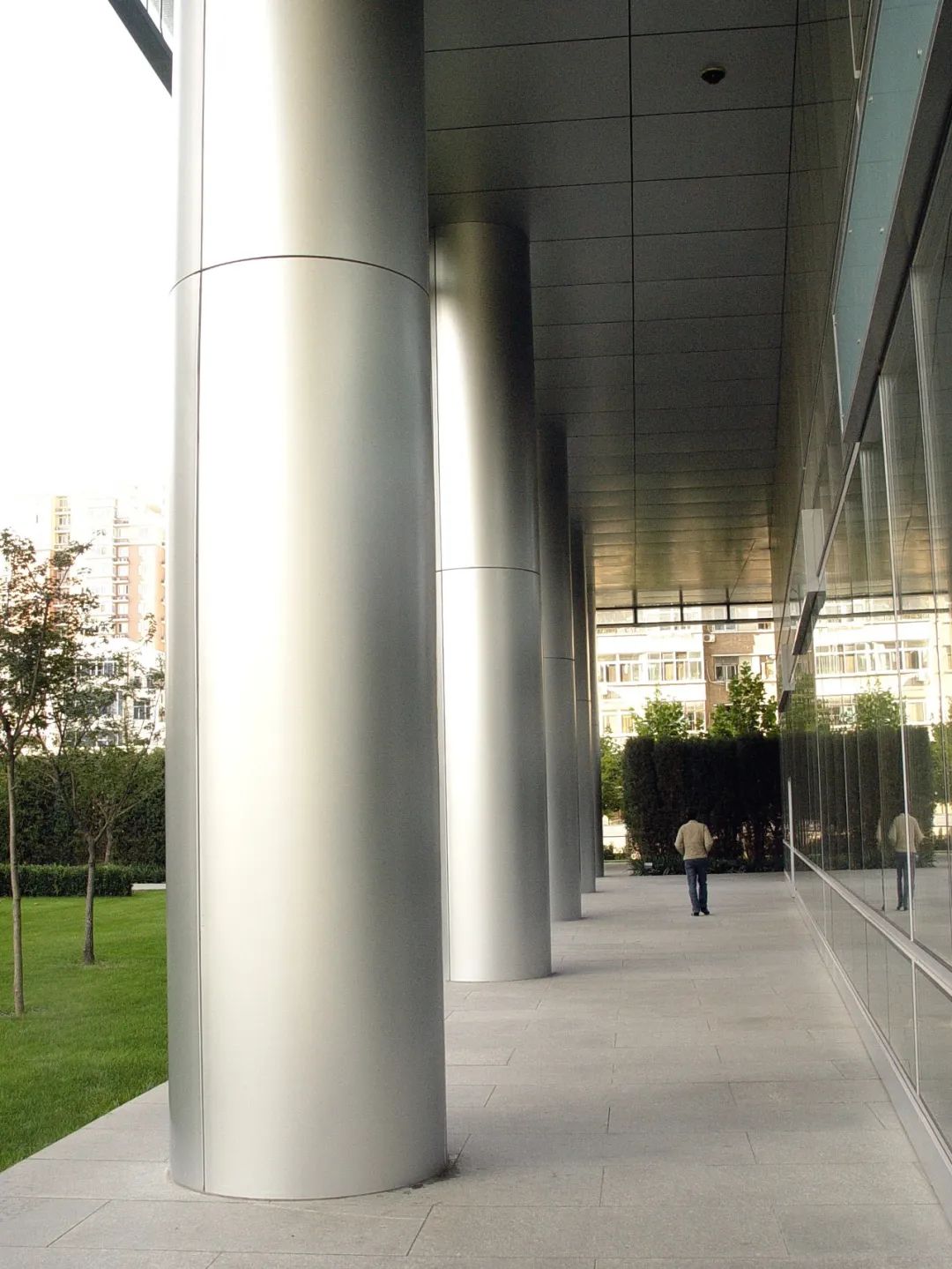 大堂西側是室外花園和梧桐大道,樹木、小路、水景和藝術小品散布其中,成為整幢建筑的重要景觀。南北兩樓底層雙層挑空,與園林景觀嵌合于一體,令陽光、美景、建筑完美結合,激發無限創想活力,營造出自然、優美、舒適的人性化商務辦公環境。