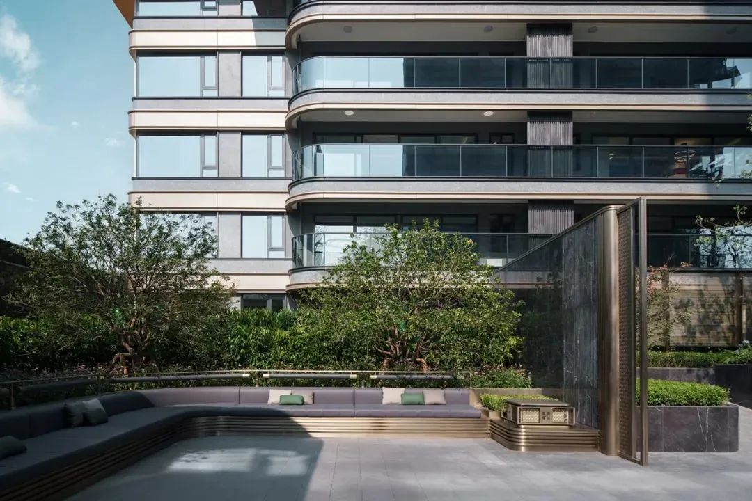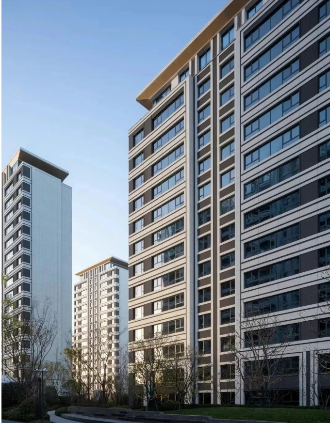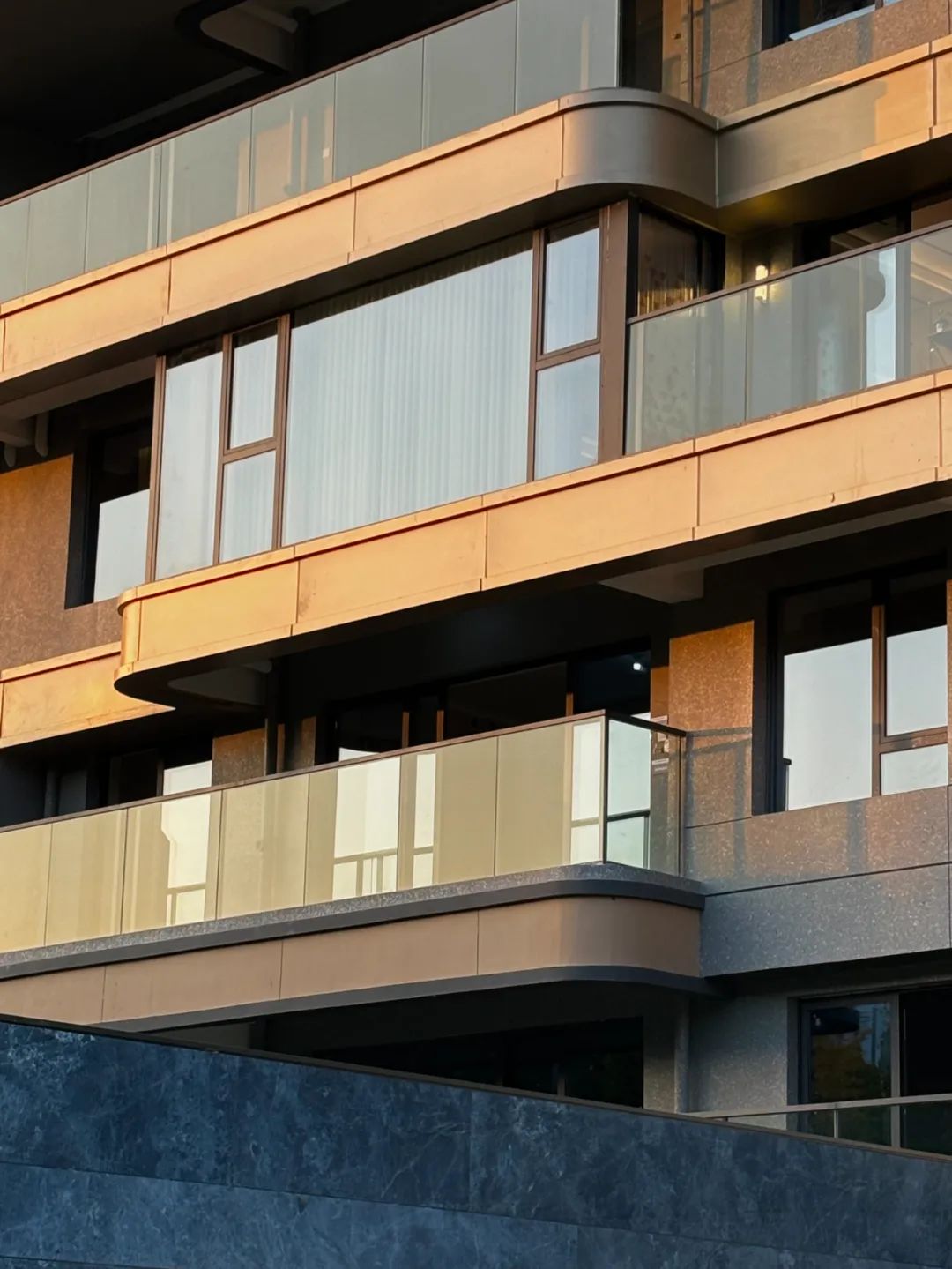 杭州詠汀洲府項目以淺云灰真石漆外立面鑲嵌大面積玻璃窗、輔以鉆石珍珠石材搭配紫磨金鋁板線條,整體在陽光下閃爍著質(zhì)感的光芒,每一個角度更經(jīng)得起看。