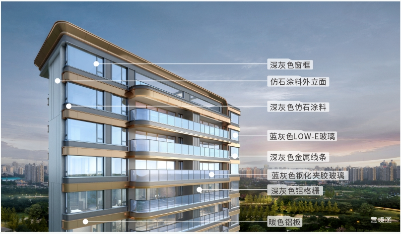 中交·象江來項目外立面選用的是充滿現(xiàn)代感的材質(zhì),考驗工藝的一體化“L”型鋁板設(shè)計、高耐候的水包水仿石涂料、充滿細節(jié)的質(zhì)感涂料、水晶灰LOW-E等新技術(shù)、新材料的搭配使用,形成了新的審美,塑造出全新維度的美學(xué)體系。