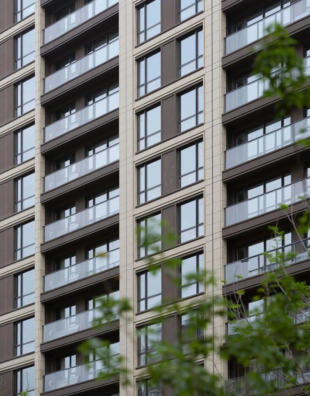 濟南融創(chuàng)文旅城·紫檀園窗框外EPS線條模擬石材勾勒出精致的窗眉、凹槽豐富層次細節(jié),主墻面以仿卡麥真石漆飾面,咖色真石漆為基調(diào)色,更具高級質(zhì)感的建筑立面印象。