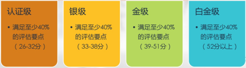 LEED綠色建筑認證分為四個級別,認證級、銀級、金級和白金級