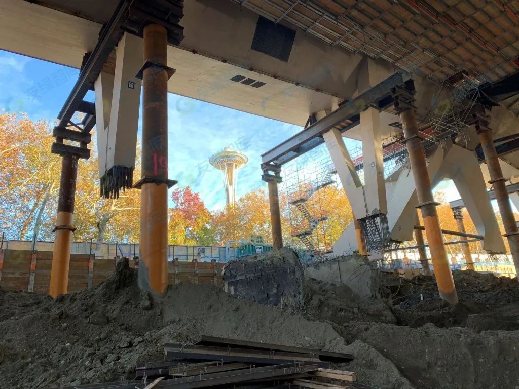 除了設計碳中和場館的挑戰外,設計還必須保留由 Paul Thiry 設計的擁有 59 年歷史的屋頂。新建筑要求將重達 4400 萬磅的屋頂保留,而新競技場則建在下方。工程師 Thornton Tomasetti 執行了一項艱巨的工作,拆除了屋頂的原始地基,并創建了一個臨時結構,使屋頂處于懸空狀態。然后,工人們在下面挖出近 100 萬噸泥土,為新場館擴大的占地面積騰出空間,其占地面積遠遠超出了上面歷史屋頂的滴水線。然后,這個重達 4400 萬磅的屋頂重新連接到新的永久地基上,這是一項建筑和工程壯舉。