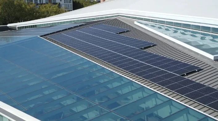 可再生能源:該場館由 100% 可再生能源供電,由太陽能電池板和場外風電場供電。