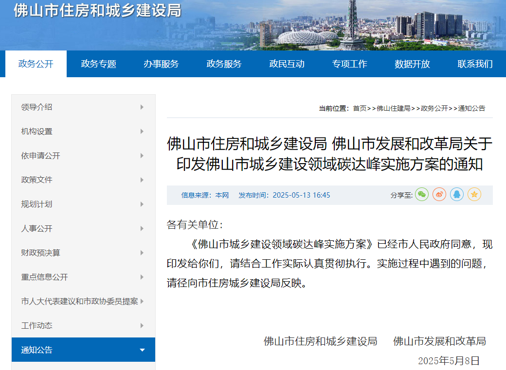 為深入貫徹習近平生態文明思想,加快落實黨中央、國務院關于力爭2030年前實現碳達峰、2060年前實現碳中和的重大戰略決策部署,全面貫徹新發展理念,積極推進廣東省以及佛山市碳達峰行動,精準、扎實開展佛山市城鄉建設領域碳排放達峰工作,根據《住房和城鄉建設部 國家發展改革委關于印發城鄉建設領域碳達峰實施方案的通知》(建標〔2022〕53號)、《中共廣東省委 廣東省人民政府關于完整準確全面貫徹新發展理念推進碳達峰碳中和工作的實施意見》(粵發〔2022〕2號)、《廣東省城鄉建設領域碳達峰實施方案》(粵建科〔2024〕13號)、《佛山市碳達峰實施方案》(佛府〔2023〕8號)等文件,制定本實施方案。