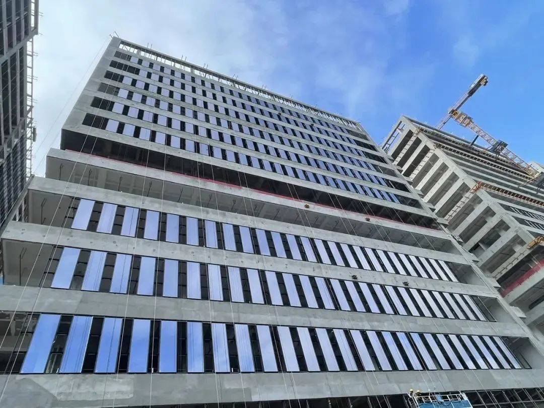 在建筑外圍護系統方面,項目選用框架式玻璃幕墻體系,結合多腔體隔熱結構與Low-E中空玻璃,顯著提升了建筑的保溫、隔熱與氣密性能,外圍護整體節能性能提升超過20%。