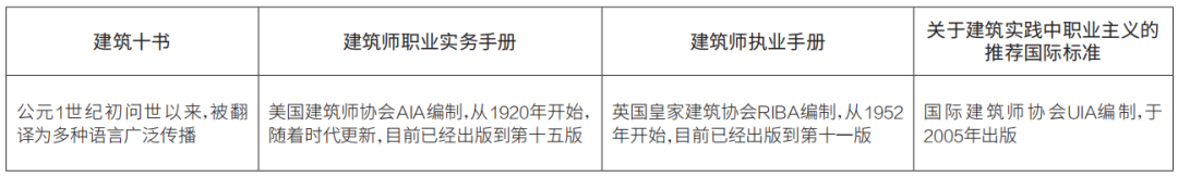 表2 國際通行的建筑師執業指南