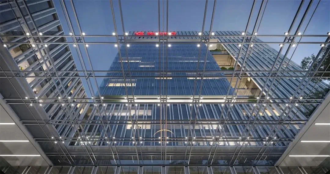 此外,項目采用懸浮體鋼結構、超高層鋼結構轉換吊掛系統仿真模擬等前沿技術,成功解決超大跨度(最大42米張弦梁)采光大堂的結構難題。這種“拉滿的弓箭”式設計,通過柔性拉索和撐桿預應力技術,巧妙支撐起近5000平方米的透亮空間,既保證建筑美學,又兼顧功能需求。
