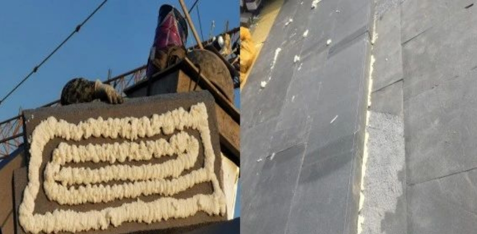 4.保溫板厚度均分兩層粘貼,必須采用發泡膠粘貼,拼縫填注發泡膠。