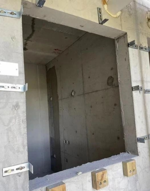 1.被動門自重較大,被動門需安裝在混凝土結構上且混凝土結構面應密實光滑。安裝好門框后底部應用細石混凝土塞實,避免應門扇過重導致門框變形。其他三面框與結構之間的縫隙應填注發泡膠,待膨脹干燥后切割整齊。