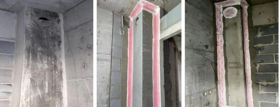 電梯井道粘貼真空絕熱板(左),給排水管道外纏橡塑保溫