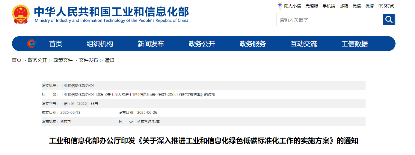 【工業(yè)和信息化部辦公廳】印發(fā)《關(guān)于深入推進(jìn)工業(yè)和信息化綠色低碳標(biāo)準(zhǔn)化工作的實(shí)施方案》的通知
