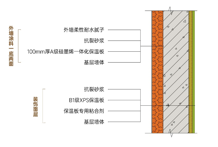 采用預制反打保溫模板外墻系統及現澆免拆保溫模板外墻系統,在確保外墻保溫性能的同時從根源上避免外墻保溫脫落的情況。外墻保溫系統所用的硅墨烯保溫板為A級不燃材料,解決外墻保溫的消防安全問題。