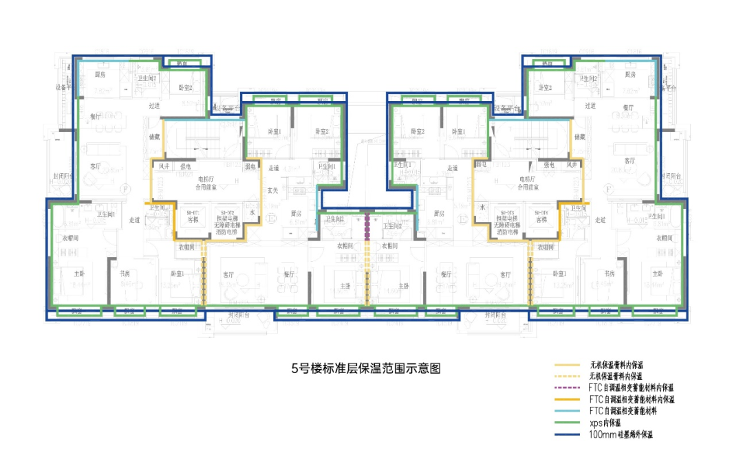 建筑保溫系統 采用高規格預制混凝土外墻預保溫系統,極大降低室內溫度流失,實現無主動供冷供熱時,室內空間溫度同樣長時間維持在人體體感的舒適區間。墻、屋面、內外窗傳熱系數均達到行業領先水平;再加上優秀的建筑整體氣密性措施,仿佛給房子穿上羽絨服和沖鋒衣,鎖溫效果顯著提升。