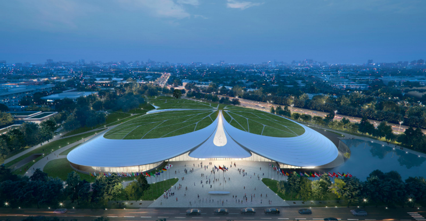 中關(guān)村國(guó)際創(chuàng)新中心位于北京市海淀區(qū)新建宮門路1號(hào),規(guī)劃總用地面積5.9099公頃,總建筑面積64998平方米,其中地上建筑面積20000平方米,地下建筑面積44998平方米。建筑高度12米,地上一層,地下二層。項(xiàng)目作為會(huì)議展覽建筑,兼容會(huì)議、展覽、餐飲等3種公共服務(wù)功能;建筑內(nèi)的餐飲設(shè)施等空間向社會(huì)公眾開放。項(xiàng)目可滿足從元首外交到2000人以下的不同規(guī)模的會(huì)議、宴會(huì)等場(chǎng)景需求。
