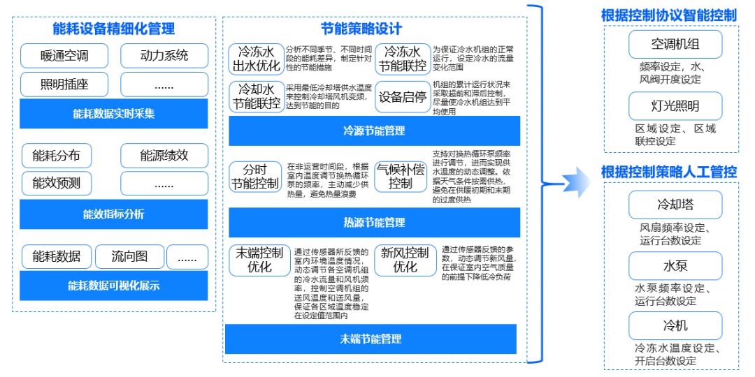 AI能效賦能,利用科技節(jié)能減排。實(shí)時(shí)AI策略尋優(yōu)在系統(tǒng)安全的前提下,實(shí)時(shí)調(diào)校系統(tǒng)運(yùn)行方式和參數(shù),達(dá)到提高能效比的目的,即在同樣冷量提供的前提下,尋找更加節(jié)約電力的運(yùn)行方式,節(jié)約大量能源,按項(xiàng)目業(yè)態(tài)和系統(tǒng)測(cè)算,預(yù)計(jì)可進(jìn)一步節(jié)能8%-13%。