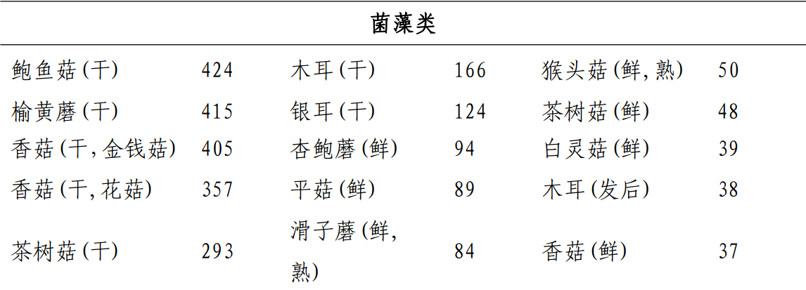 表1 常見食物按嘌呤含量分類(單位:mg/100g)