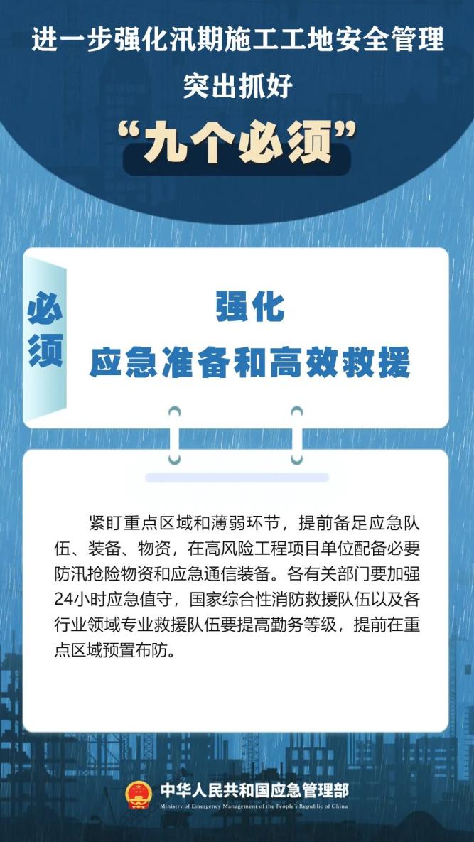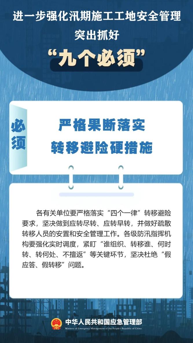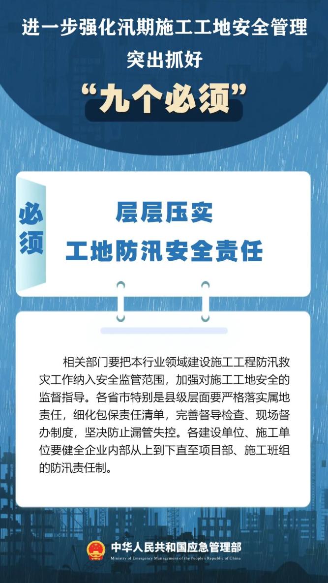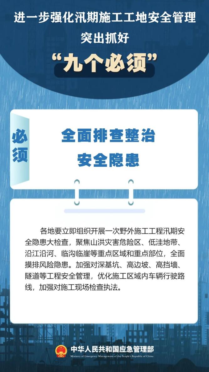 通知強調,進一步強化汛期施工工地安全管理,要突出抓好“九個必須”: