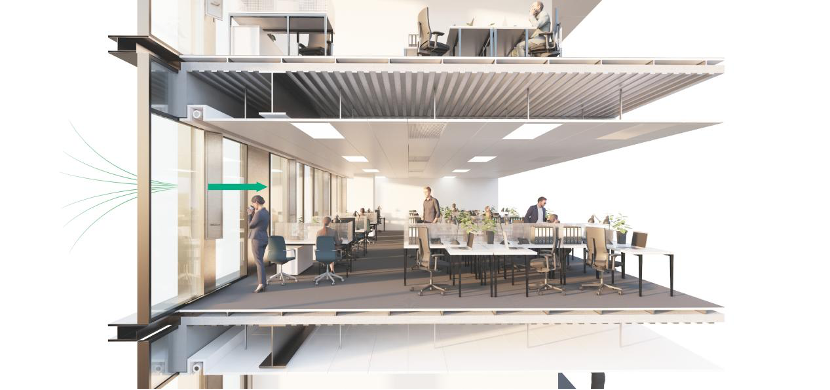 中海金融中心1號樓宇聚焦被動技術降需求、主動技術提能效、能源轉型降排放、低碳建造降隱含碳等4大類18項技術措施,構建了一個綠色、環保、高效的辦公環境。