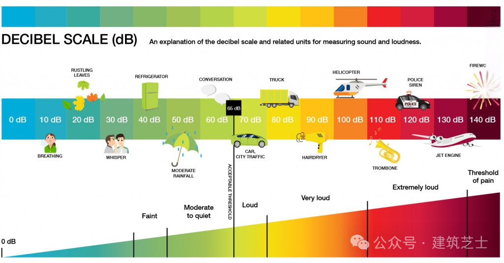 住宅環境中的常見噪聲來源可分為室外生活噪聲、室內生活噪聲、管道及設備噪聲。噪聲在住宅建筑中的傳遞方式主要有空氣傳聲(交通噪音、社會生活、自然噪音等)和固體傳聲(電視聲、腳步聲、家具挪動聲、管道水流聲、洗衣機振動等)兩種。 空氣傳聲通常可采取隔音和吸音的方式減弱聲能,如輕質多孔結構的構件減弱高頻波段的聲音、重質建筑構件阻隔低頻波段的聲音,同一種材質往往很難解決低頻和高頻問題,常常采用復合材質的解決方案。 固體傳聲需通過減振或隔音處理,高頻振動易在重質材料(如混凝土結構)中被吸收,低頻則需隔振阻尼材料減弱低頻聲波傳遞。 因此,通過住宅建筑的隔聲設計,選用滿足空氣聲和撞擊聲性能的建筑構件和構造做法,并通過在施工階段的質量控制和竣工驗收檢測,以保證住宅建筑交付時,鄰戶之間的空氣聲和撞擊聲隔聲性能達標。