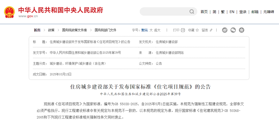 住房和城鄉建設部于2025年5月1日正式實施的《住宅項目規范》GB55038-2025中對住宅隔聲提出了更嚴格的指標要求。主要體現在兩個方面,首先對管控指標項進行了重大調整:由在實驗室中測量、反應構件隔聲性能的計權隔聲量改成了在現場測量反應房間實際隔聲效果的計權標準化聲壓極;其次對各項聲學指標限制均有所提高:如臥室分戶墻、分戶樓板空氣聲隔聲由45dB提升到50dB,樓板撞擊聲隔聲要求從75dB提升到65dB,臥室的建筑設備結構噪聲低頻等效聲級由不大于37dB提升至不大于30dB等。