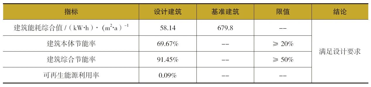 由上表可知,建筑綜合節能率為91.45%,建筑本體節能率( 不包含可再生能源) 為69.67%,滿足《近零能耗建筑技術標準》GB/T51350-2019中的超低能耗建筑能效指標要求。