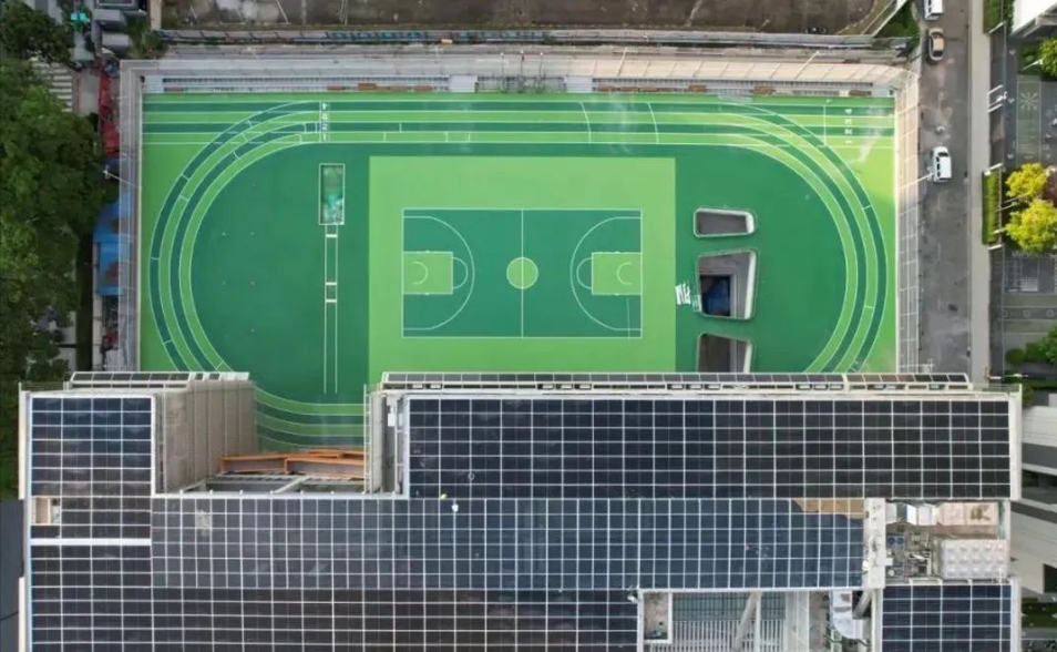 深圳高新小學的建筑風格獨具匠心,整體輕盈流暢、簡潔大方,功能布局合理且一應俱全。校園內部,庭院空間與城市綠化相互滲透、交互融合,營造出一種科技感十足、開放包容且充滿生態氣息的獨特氛圍,充分彰顯出灣區特有的校園特質。而教學樓更是成為光伏在建筑領域成功應用的典范之作,光伏組件在屋頂、欄桿、遮陽板等不同區域巧妙運用,為校園增添了一抹獨特的綠色科技色彩。