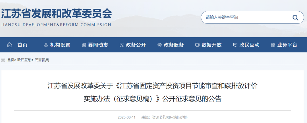時間:2025-08-14 13:47:46 作者:GBWindows 來源:行業網站 閱讀:493內容摘要:碳中和觀察獲悉,日前,江蘇發改委發布《江蘇省固定資產投資項目節能審查和碳排放評價實施辦法(征求意見稿)》,旨在建立能耗雙控向碳排放雙控轉型新機制,加強項目能源消費和碳排放管理。辦法適用于省內各級政府投資主管部門管理的固定資產投資項目,明確節能審查和碳排放評價的定義,規定審查意見是項目開工、驗收和運營的重要依據。同時,辦...碳中和觀察獲悉,日前,江蘇發改委發布《江蘇省固定資產投資項目節能審查和碳排放評價實施辦法(征求意見稿)》,旨在建立能耗雙控向碳排放雙控轉型新機制,加強項目能源消費和碳排放管理。辦法適用于省內各級政府投資主管部門管理的固定資產投資項目,明確節能審查和碳排放評價的定義,規定審查意見是項目開工、驗收和運營的重要依據。同時,辦法詳細規定了管理職責、審查程序、監督管理、法律責任等內容,強調審查結果納入投資項目在線審批監管平臺,加強統計分析、事中事后監管,對違規行為有明確處罰措施,還包含節能報告、項目情況說明、節能信息表等附件要求。