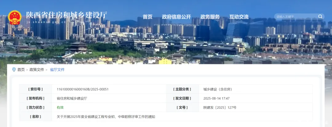 8月14日,陜西省住建廳印發(fā)通知,開展2025年度全省建設(shè)工程專業(yè)初、中級(jí)職稱評(píng)審工作。通知全文如下: