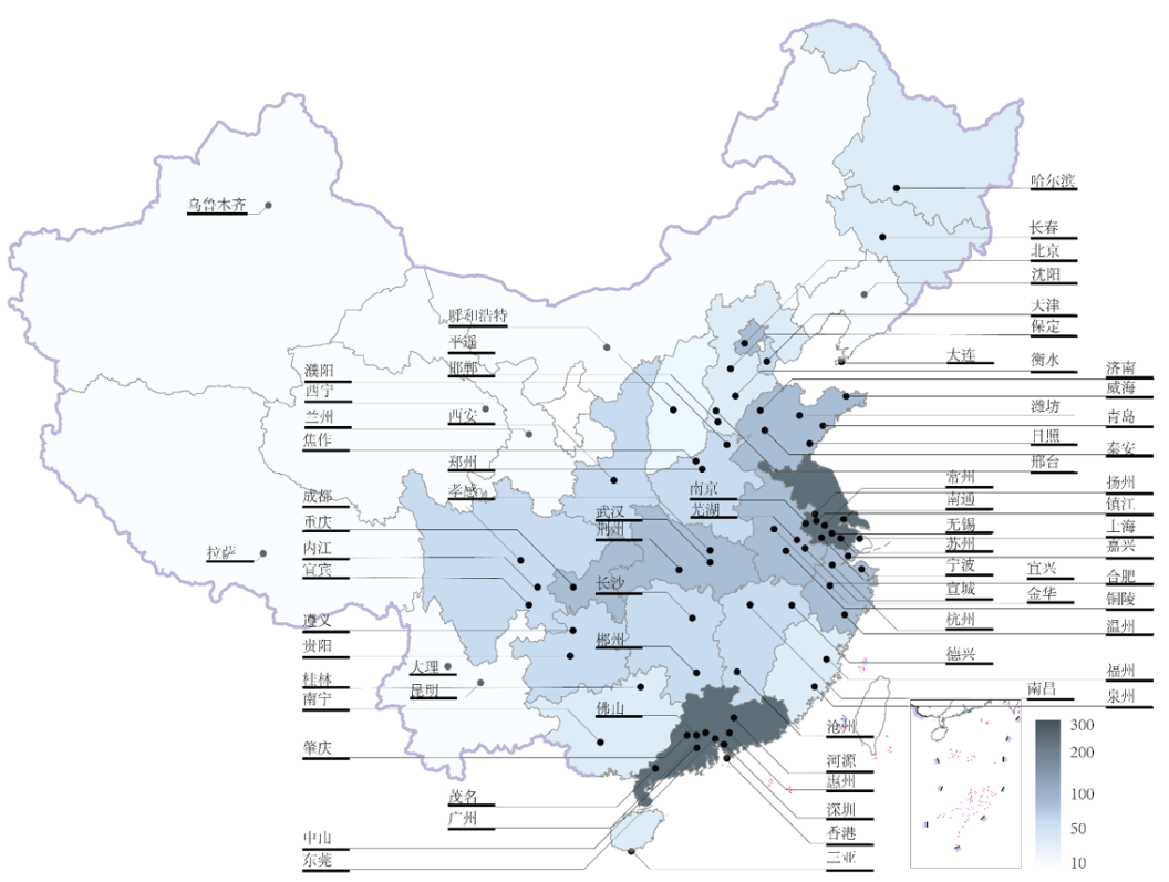 課題組開展的建筑立面空調外機調研覆蓋的省份和數量