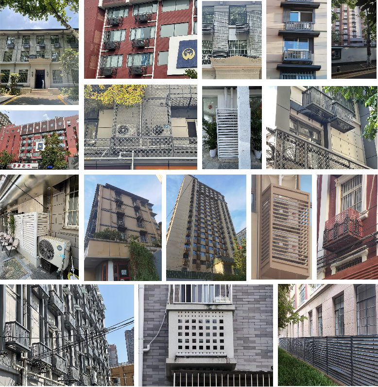 因此,需要重新凝視“遮擋”這一習以為常的動作,唯有把風貌、熱島、能耗成本、碳足跡、噪聲污染與材料循環納入同一張評估表,才能厘清它對建筑美學與可持續發展的真實分量。同時也觀察到,城市一些場景(例如歷史街區與建筑風貌保護)難以避免地需要“隱藏”空調外機,在與格力聯合開展的焓差實驗也發現:通過精細化遮擋設計,EER損失可從完全遮擋的1.73回升至2.76,與裸機2.77幾乎無異,可實現風貌與性能平衡。面對業已大面積存在的遮擋存量,則可借助我國城市存量更新、提質增效過程,對其拆除、改造、優化三策并舉,是一項小成本、高回報的工程。
