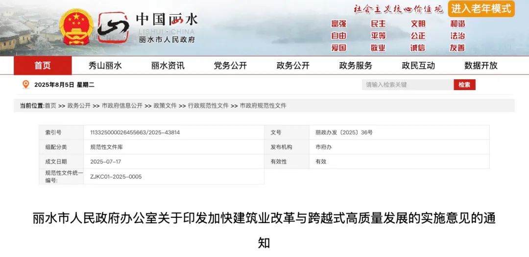 2025年7月17日,麗水市人民政府辦公室印發(fā)《加快建筑業(yè)改革與跨越式高質(zhì)量發(fā)展的實(shí)施意見(jiàn)》。