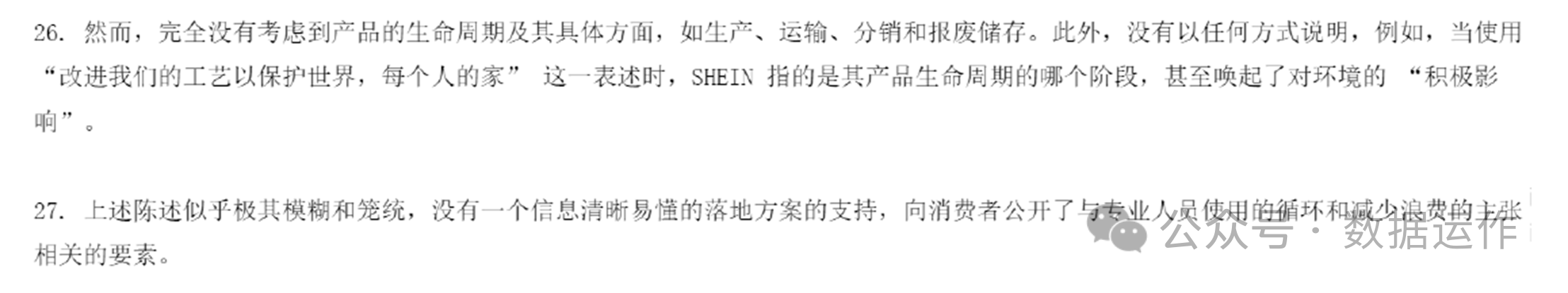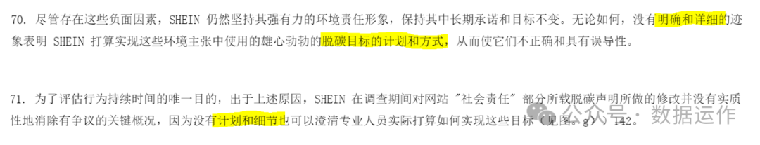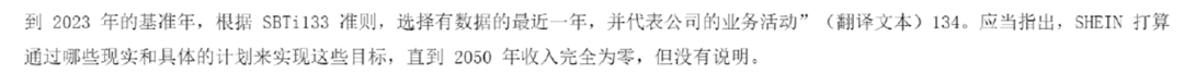 66段顯示,SHEIN未說明打算通過哪些現實的、具體的計劃來實現上述碳目標,即到2050年徹底消除溫室氣體。