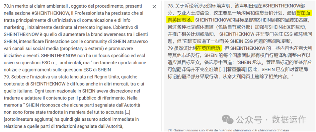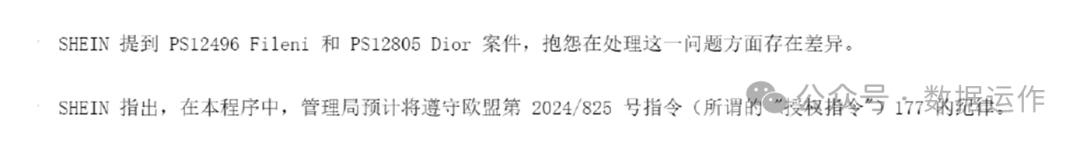 20249月,意大利AGCM啟動了對Shein的調查(PS12709),認為其宣傳內容可能包含誤導性的環境聲明。20258月,AGCM做出了處罰決定并發布處罰報告。處罰報告內容詳盡,包含了AGCM的完整調查內容和Shein的申辯意見。