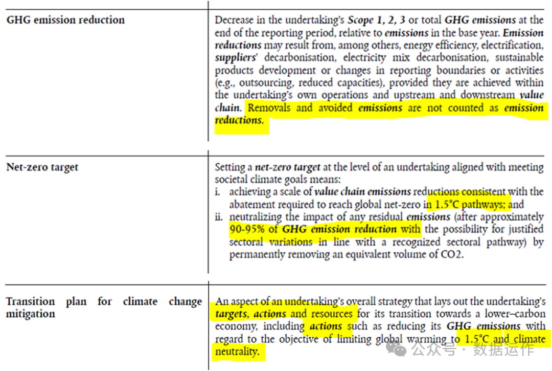 這段是關鍵,ESRS對于“凈零排放”的定義比SBTi更嚴格:(注意這個90-95%的比例,和“減排”的定義)