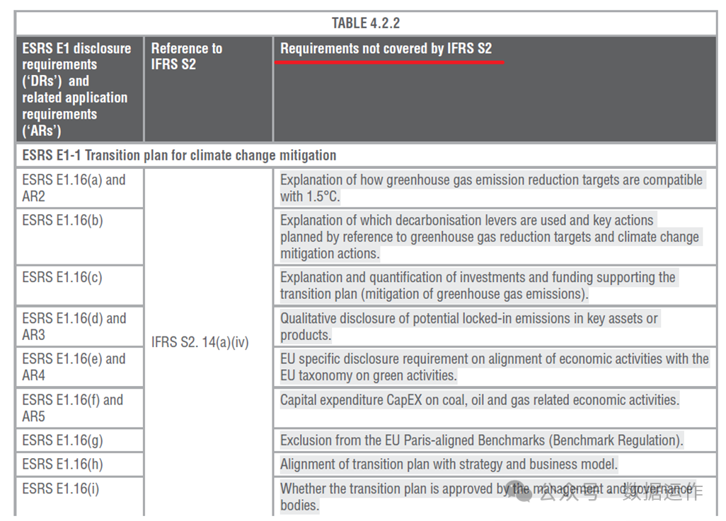 IFRS S2相比,歐盟ESRS對于碳目標的額外要求有: