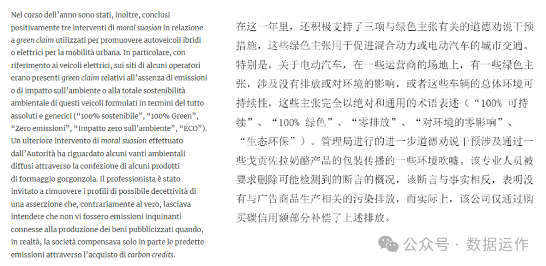 AGCM不認可各種以偏概全的綠色聲明,這類聲明可能使消費者高估綠色材料的比例。所以國內企業找亮點的宣傳手法在歐盟不能用。