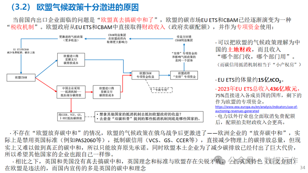 歐盟在全球推行本土立法,不僅可以使本土企業取得相對優勢,還可以直接從中取得財政收入,例如歐盟政府在碳市場EU ETS中賣碳配額給本土企業賺錢,又通過碳關稅CBAM賣碳配額給進口商賺錢。歐盟反感英國背景NGO的原因是,CDP/SBTi總想玩一些“變通措施”。如果把歐盟的氣候政策比作中國的土地財政,那么CDPSBTi就是小產權房中介: