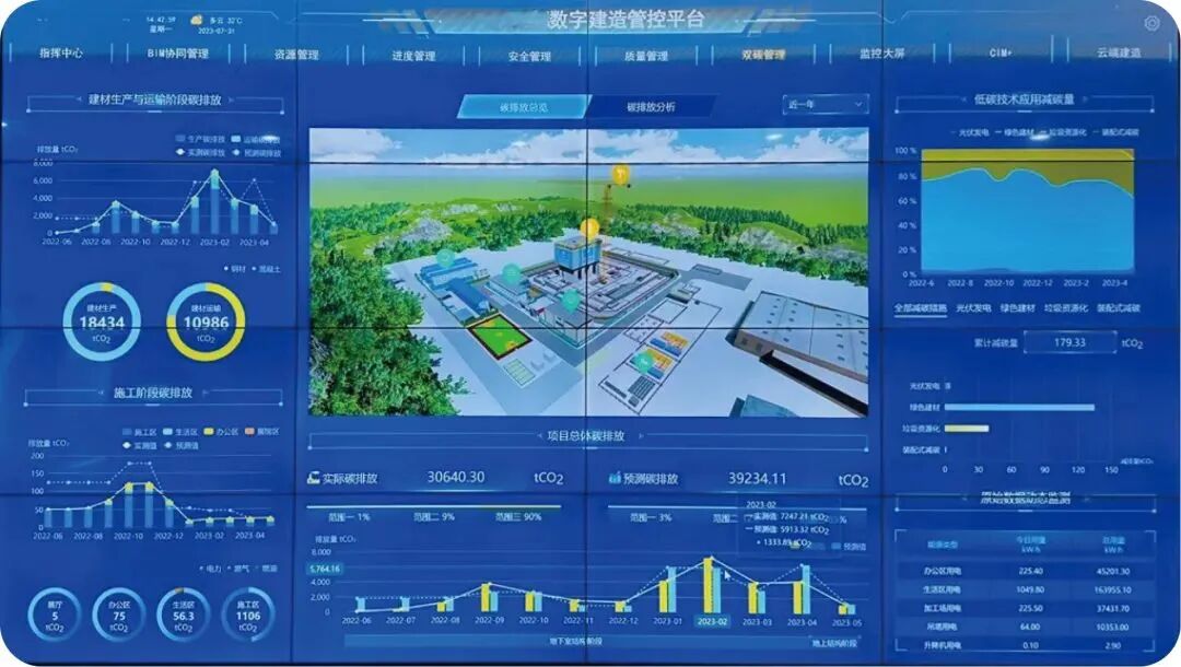 全過程BIM技術應用: 從設計、采購、施工到運維,項目全面應用建筑信息模型(BIM)技術。通過數字化的協同平臺,打通了各階段壁壘,實現了精準的碰撞檢查和施工模擬,有效減少了材料浪費和現場返工,從而降低了建造過程的碳排放。