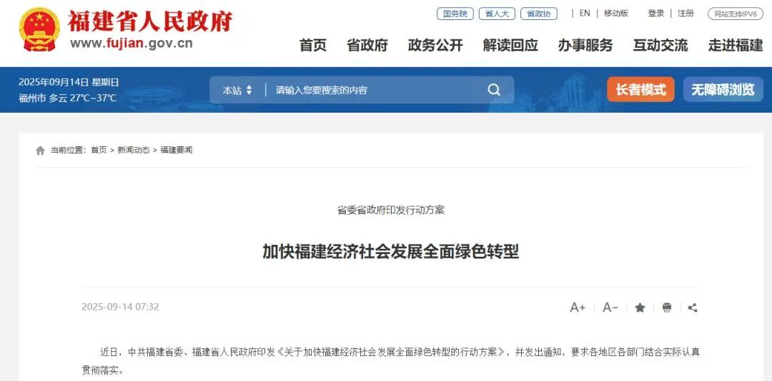 《關于加快福建經濟社會發展全面綠色轉型的行動方案》全文如下。