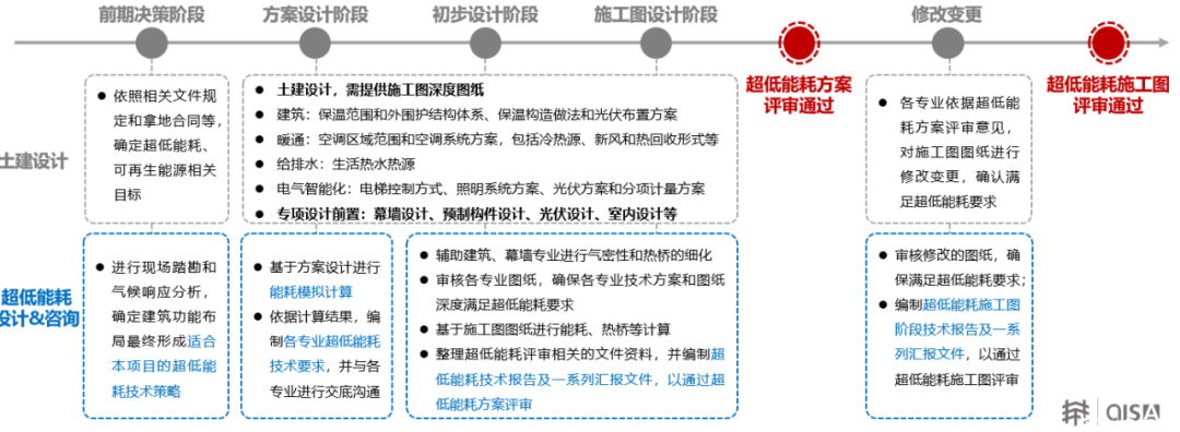 設(shè)計階段——多專業(yè)協(xié)同設(shè)計,聚焦氣密性、熱橋控制、可再生能源利用等超低能耗關(guān)鍵技術(shù)環(huán)節(jié),開展節(jié)點化技術(shù)評審,確保設(shè)計方案具備可實施性與性能保障能力。