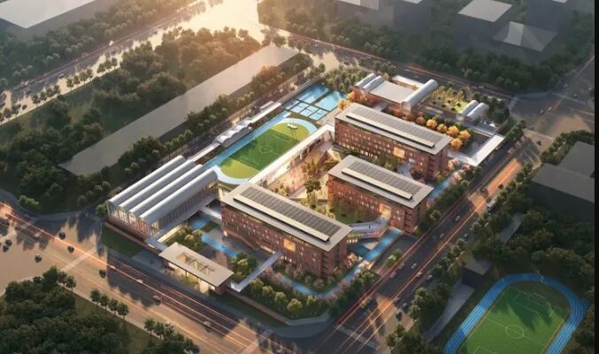 校園布局分為東側(cè)活動區(qū)與西側(cè)教學(xué)區(qū),東區(qū)配置200米操場、游泳館、大報告廳等設(shè)施。值得一提的是,游泳館與報告廳將面向社會開放,在滿足教學(xué)需求的同時,進一步助力開發(fā)區(qū)文化服務(wù)體系建設(shè),營造優(yōu)質(zhì)區(qū)域人文環(huán)境。