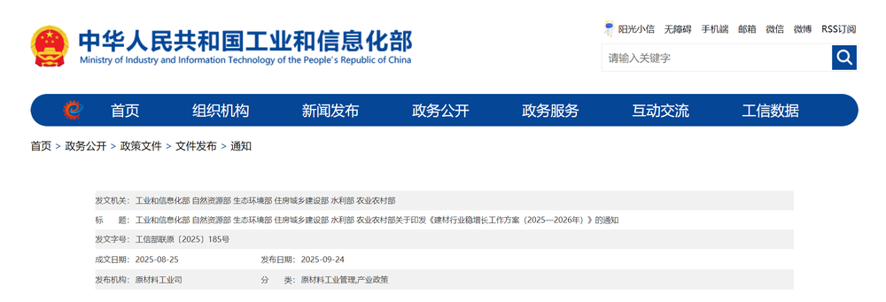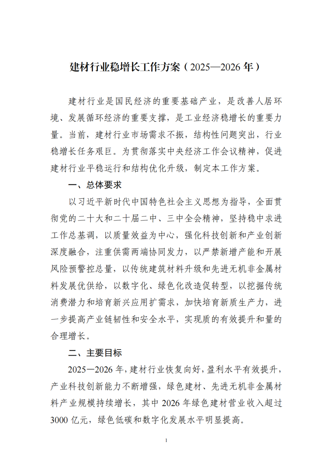 關于印發《建材行業穩增長工作方案(2025—2026年)》的通知
