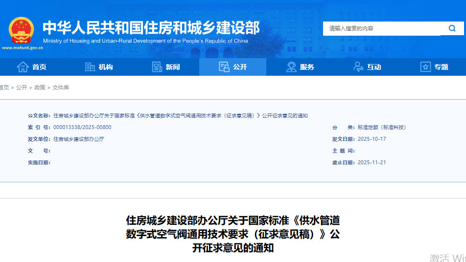 根據(jù)《國家標(biāo)準(zhǔn)化管理委員會關(guān)于下達(dá)2024年第四批推薦性國家標(biāo)準(zhǔn)計(jì)劃及相關(guān)標(biāo)準(zhǔn)外文版計(jì)劃的通知》(國標(biāo)委發(fā)〔2024〕28號),我部組織株洲南方閥門股份有限公司等單位起草了國家標(biāo)準(zhǔn)《供水管道數(shù)字式空氣閥通用技術(shù)要求(征求意見稿)》(見附件)。現(xiàn)向社會公開征求意見。有關(guān)單位和公眾可通過以下途徑和方式提出反饋意見: