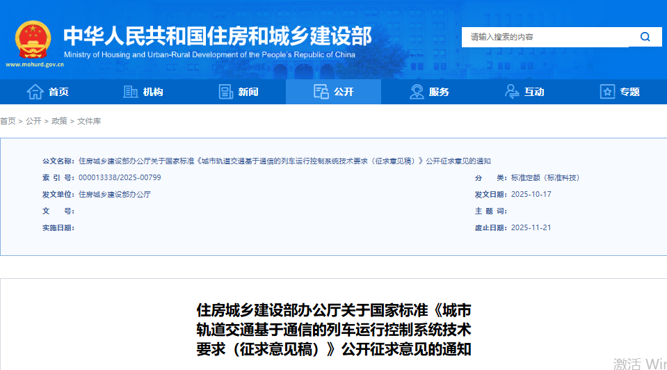 根據(jù)《國家標(biāo)準(zhǔn)化管理委員會關(guān)于下達(dá)2024年第五批推薦性國家標(biāo)準(zhǔn)計(jì)劃及相關(guān)標(biāo)準(zhǔn)外文版計(jì)劃的通知》(國標(biāo)委發(fā)〔2024〕32號),我部組織北京交通大學(xué)等單位起草了國家標(biāo)準(zhǔn)《城市軌道交通基于通信的列車運(yùn)行控制系統(tǒng)技術(shù)要求(征求意見稿)》(見附件)。現(xiàn)向社會公開征求意見。有關(guān)單位和公眾可通過以下途徑和方式提出反饋意見: